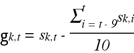 随后,评估当前年份的增长率与历史平均水平的相对位置,衡量标准为本年度的同比增长率与近十年(包括本年度)同比增长率的平均值之间的差,记为的计算公式为: