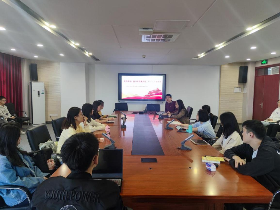 会议伊始,许硕老师带领支部党员学习学校第十三次党代会精神,并作《奋力奔跑重实践,抢抓机遇建新功》的专题报告。许老师指出,学校第十三次党代会回顾学校过去五年的工作,强调坚决做到“九个坚持”“五个必须坚持”的重要性。展望新时代,“三强三问”是每位贸大人都需要深度思考的问题,“八个下更大功夫”战略是为坚定走好建设特色鲜明、世界一流大学的贸大新路的有力举措。另外,许老师还围绕学校高质量发展三年行动计划,结合同学们自身实际情况进一步领学,强调着重提升基层党建引领能力,要切实发挥基层党支部的战斗堡垒作用与支部党员的示范引领作用,做到密切联系师生群众。