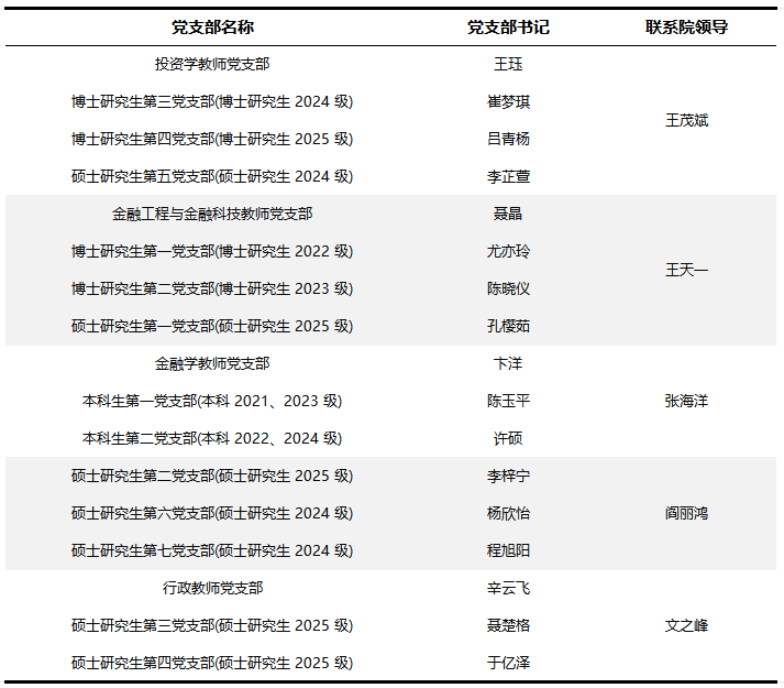 2000年6月,原皇冠体育网址 和皇冠体育网址 合并组成新的皇冠体育网址 。2001年3月,在原皇冠体育网址 金融系、工商管理系、国际经济系基础上组建成立金融皇冠体育网址。目前,皇冠体育网址党委下辖17个党支部(一线教师党支部3个、行政教师党支部1个、本科生党支部2个、硕士研究生党支部7个、博士研究生党支部4个)。
