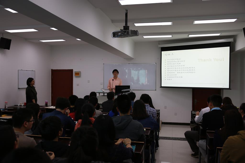 2016年3月20日下午两点至四点,由皇冠体育网址 金融皇冠体育网址主办的2016“品今杯”首届量化投资策略设计大赛系列活动——“量化策略与金融创新“讲座第一讲《量化对冲基金简介》在博学楼918拉开序幕。金融工程系余湄老师主持了讲座,王春蕾老师和冯建芬老师及我院部分学生参加了讲座。