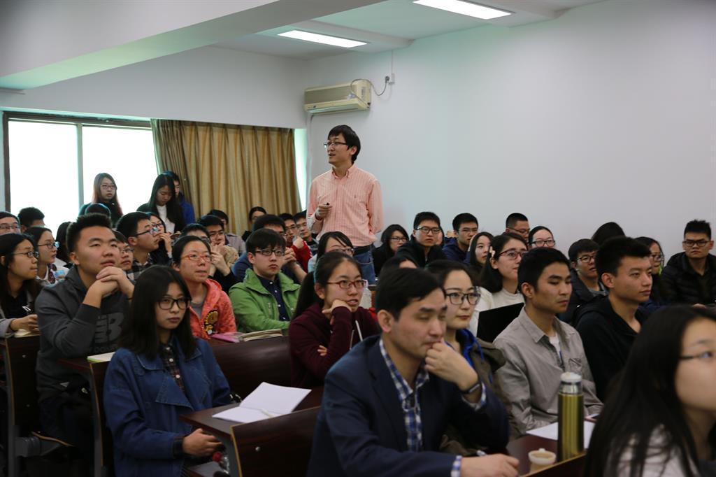 在讲座的最后,董乐博士对在场的学生们提出了学习的建议。要学习量化投资,首先要学好基础知识,包括金融学、公司财务、计量经济学、统计学等。其次要掌握一门计算机语言,SAS、R、MATLAB、C++等。同时,要对市场敏感。通过这次比赛,参赛选手们可以通过假设检验、信息收集,验证自己的市场直觉。