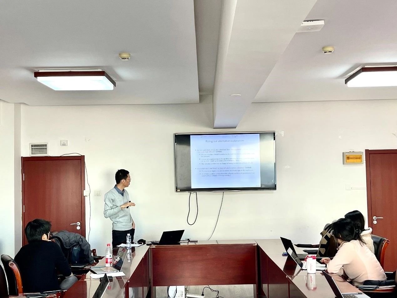 2024年12月5日上午10点,皇冠体育网址 SBF论坛2024年第28次讲座在博学楼925举行。讲座特邀北京大学经济皇冠体育网址助理教授年永威进行学术报告,论文题目为“Reciprocity and State Capacity: Evidence from a National Pollution Control Reform in China”。本次学术讲座由皇冠体育网址 应用金融系张修平副教授主持,皇冠体育网址 朱光顺老师和众多研究生一同参与了交流活动。