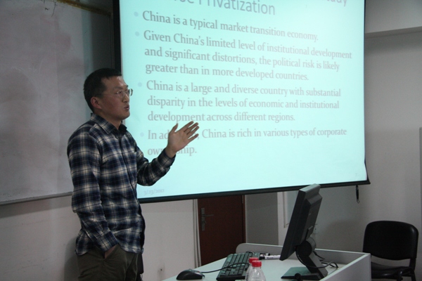 2012 年3月15日 ,金融皇冠体育网址王茂斌老师在博学楼918举行了题为“反向私有化的政治经济学:中国证据”的学术讲座。讲座由邹亚生副院长主持,皇冠体育网址教师、部分博士后参加了讲座。