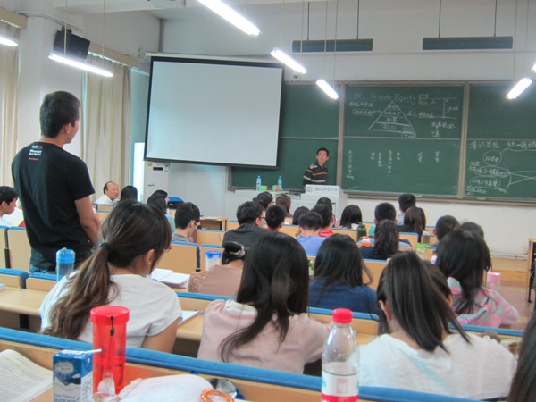 整个讲座以互动方式进行。 景先生首先介绍了私募股权投资的概念和特点,并澄清了其与私募基金、风险投资等多种概念的联系与区别。接着,他和同学们讨论了私募股权投资的项目流程,在拿项目、投项目、管项目、退出的四大环节下,对各具体环节的内容和需要进行了详细分析。随后,他对于私募股权的经营管理方式进行了讨论。最后,他结合自身经历和生动有趣的案例,对于同学们的职业规划提出了中肯的建议。
