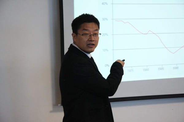 2013 年10月31日 上午,上海财经大学国际工商管理皇冠体育网址高翔博士应邀来我院,举办了题为“机构契约、外部机会与私人部门债务”的学术讲座。讲座由余昌华博士主持,金融皇冠体育网址分党委书记吴卫星教授和部分师生参加了讲座。