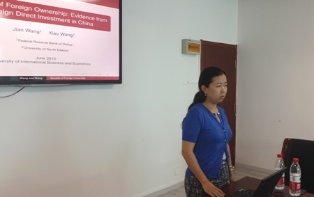 2015 年6月11日下午14:00,北达科达州立大学王潇博士在博学楼925举办了一场题为“外国所有权收益:来自外国对中国直接投资的证据”的学术讲座。王潇博士首先通过“国际并购能为发展中国家带来什么”这一问题引出讲座主题。她指出,传统观点认为直接投资能够产生正向影响,特别是对于生产力。同时,直接投资相对于金融投资安全性更高,因此发展中国家常鼓励直接投资。然而,王潇博士提出应当在考虑内生性的情况下进一步探讨外国直接投资是否真的会带来正向影响。