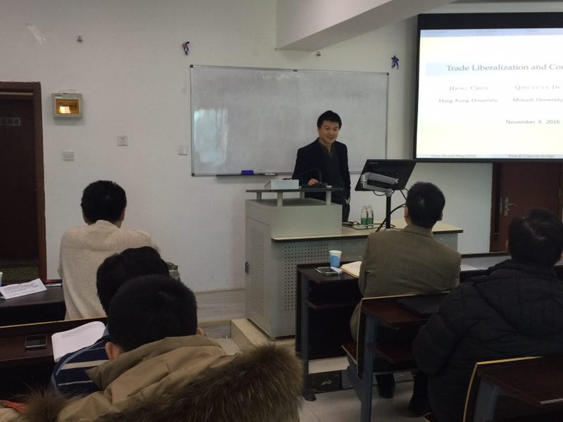 2016年11月23日下午两点,澳大利亚莫纳什大学杜清源助理教授应邀来我院在博学楼918进行了一场学术讲座,主题为“Trade Liberalization and Corporate Savings”,皇冠体育网址部分老师、研究生也到场进行了学习交流。