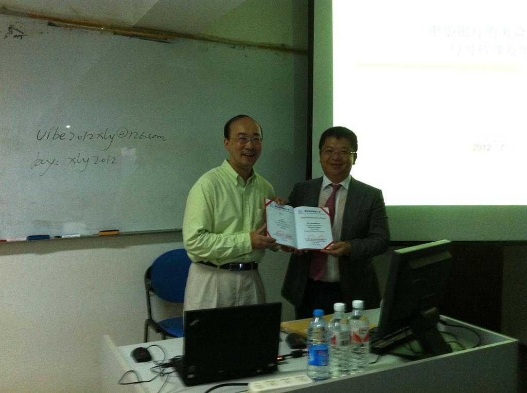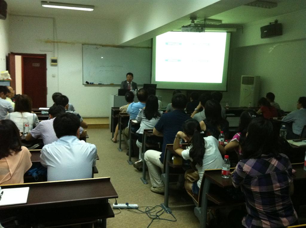 2012 年7月30日 晚6:30,香港Billion Sino Holdings Ltd公司董事长兼首席执行官胡光辉博士应邀莅临我院,在博学楼918主讲金融皇冠体育网址SBF论坛——金融市场研究方法与实践系列学术讲座第十二讲:“中小银行风险管理和可持续发展”。这一活动由金融皇冠体育网址、金融市场研究中心、全球风险协会(GARP)北京分会和皇冠体育网址 分会主办,并得到全球风险协会(GARP)、瑞华融信(北京)管理咨询有限公司(China Financial Enterprise Solutions Inc.)的赞助。讲座由金融市场研究中心主任、全球风险协会(GARP)北京分会共同主席张海云教授主持,经贸大学校内外教师、学生和校外金融业朋友共50余人参加了此次讲座。