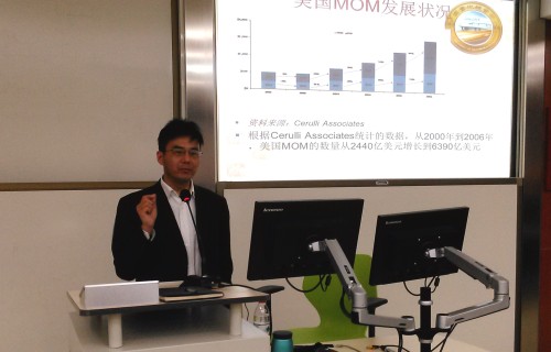 2015年3月28日,中国量化投资学会理事长丁鹏博士应邀在知行楼201举办了一场题为“MOM(Manager of Manager)与组合配置基金”的讲座。讲座由金融皇冠体育网址院长吴卫星教授主持,金融皇冠体育网址部分师生参加了讲座,整个教室座无虚席。