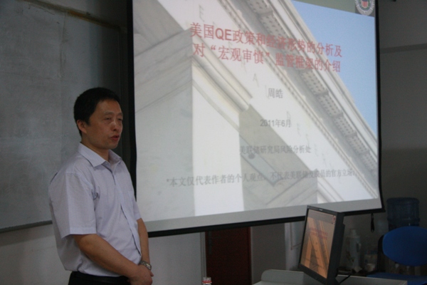 ,美联储风险管理部高级经济学家、美联储“宏观审慎”调控体系的主要设计人之一——周皓博士,应邀来我院举办了一场题为“美国QE政策和经济形势的分析及对‘宏观审慎’监管框架的介绍”的讲座。金融皇冠体育网址院长丁志杰教授,副院长邹亚生副教授、吴卫星教授,金融系主任郭红玉教授、金融工程系主任刘立新教授、投资系主任王茂斌以及金融皇冠体育网址其他教师和博士后参加了此次讲座。讲座由邹亚生副院长主持。