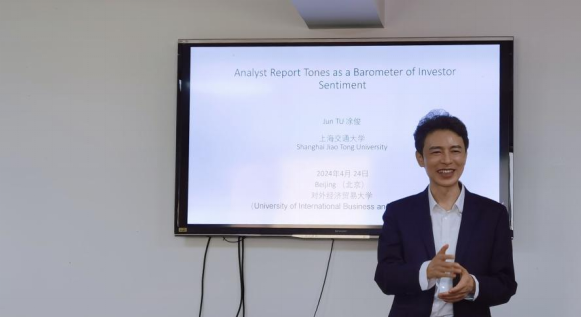 凃俊教授为皇冠体育网址师生带来题为“Analyst Report Tones as a Barometer of Investor Sentiment”的精彩报告。凃教授首先介绍了研究背景和核心问题,即投资者情绪推动错误定价的情况下,分析师是否会予以纠正,通过汇总分析师报告中的基调从而引入市场层面的分析师情绪指数来评估投资者情绪。凃教授接着以一则新闻引入,对于文本挖掘的重要性和自然语言处理的科学发展过程进行梳理,阐释文章基于文本分析的研究框架。凃俊教授对文章所构建的分析师情绪指数与BW指数、HJTZ指数、消费者信心指数等情绪指标之间的关联进行解读,提出文章以分析师这一连接投资者和公司管理层的中介为切口构造指标的创新性。凃教授指出,与传统指数相比,文章中构造的分析师情绪指数更善于捕捉近年来投资者情绪的变化,分析师情绪指数对股市回报的预测是相反的,在预测能力方面优于传统情绪指数。