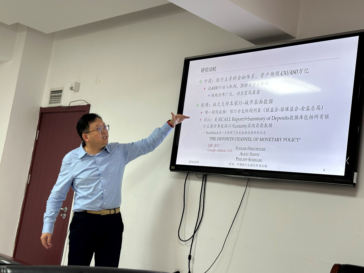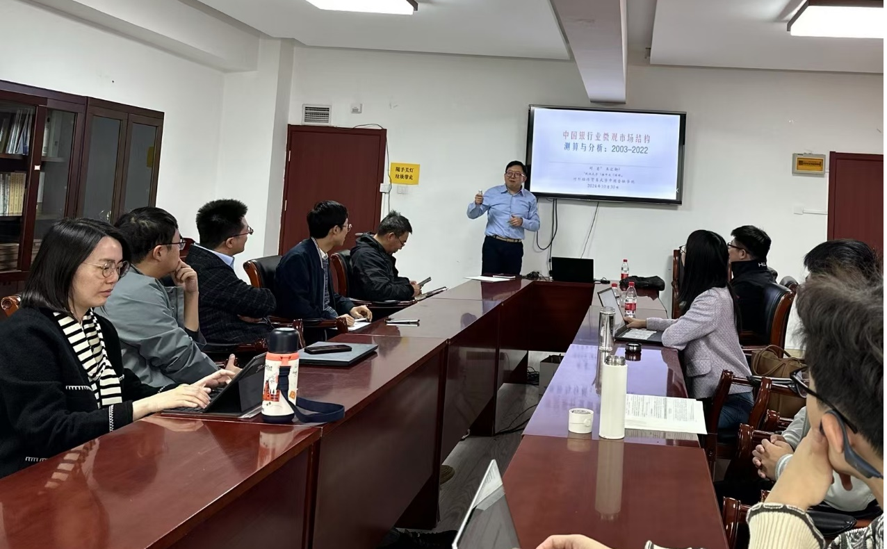 2024年10月30日下午3点,皇冠体育网址 SBF论坛2024年第19次讲座在博学楼925举行。讲座特邀武汉大学经济与管理皇冠体育网址金融系副系主任刘岩副教授进行学术报告,论文题目为《中国银行业微观市场结构测算与分析:2003-2022》。本次学术讲座由皇冠体育网址 宫迪老师主持,我院姜婷凤老师、旷纯老师、储寅啸老师、范中杰老师、韩杨老师、井辰星老师和国际经济贸易皇冠体育网址彭玉磊老师、李晓明老师、保险皇冠体育网址李蔚老师和众多学生一同参与。