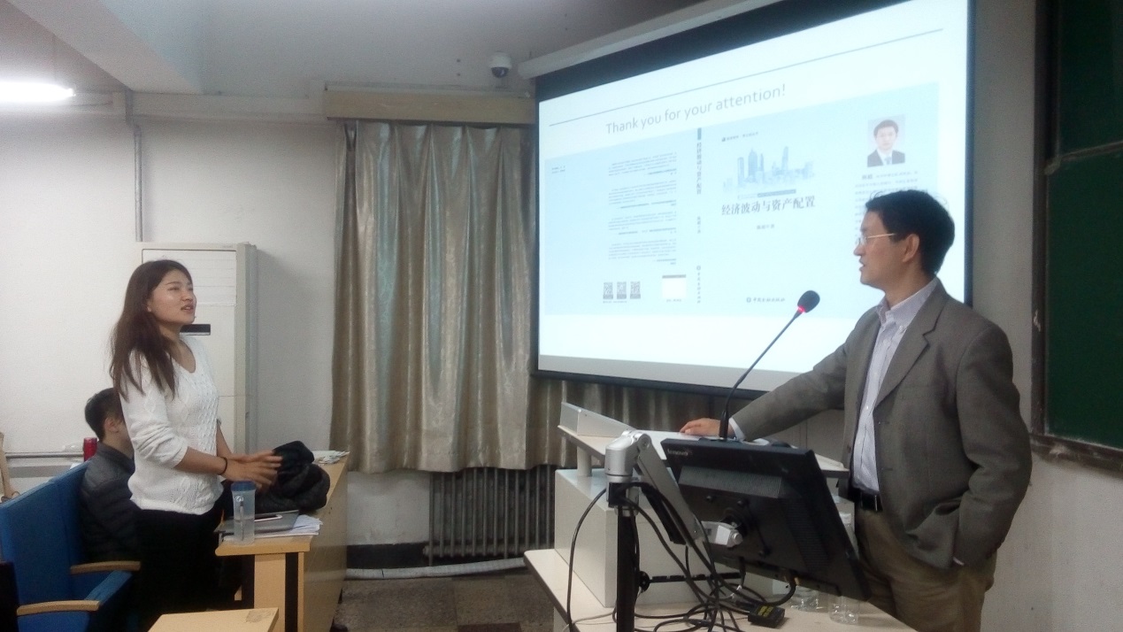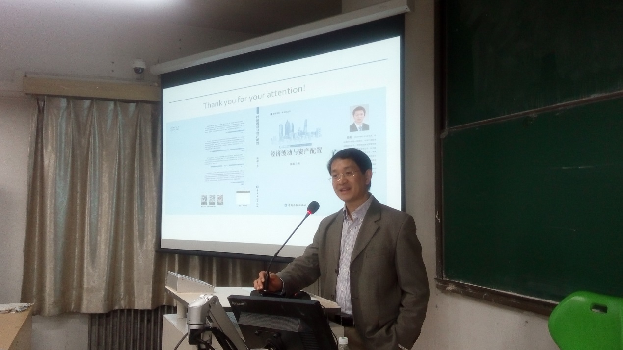 陈超老师是中国人民银行研究生部博士、英国牛津大学金融硕士、德国柏林经济皇冠体育网址访问学者,具有丰富的从业经验,先后供职于中国人民银行、中央汇金投资有限责任公司、工银瑞信基金管理有限公司和中国投资有限责任公司,现任中国投资公司私募股权欧洲投资负责人,管理50亿欧元投资组合。他学术水平卓著,在我校及中国科皇冠体育网址大学、国家会计皇冠体育网址、中央财经大学、北京外国语大学和武汉大学等院校任兼职教授,在国内外刊物发表论文80余篇,并出版有多部学术专著。在本场讲座中,陈超老师站在理论和实践的高度上,利用自身精湛的专业知识及多年丰富的从业经验,生动形象地为同学们讲解了经济波动与资产配置之间错综复杂的关系。