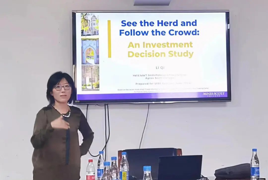 齐力教授为皇冠体育网址师生带来题为“See the Herd and Follow the Crowd: An Investment Decision Study”的精彩报告。齐教授首先介绍了研究背景和核心问题,即聚焦视觉神经和投资行为的研究,关注视觉行为与注意力分配对于股票交易中羊群行为的影响,并从学科理论出发,对于行为金融学在经济学中的地位进行梳理。齐力教授接着提出注意力和决策、羊群行为与决策相关的假说,阐释文章对于价格等因素的实验设计,以相对注视时长和注视偏差度量注意力,以及利用热力图捕捉眼动实验中的注意力,发现当私人信息与他人行为不一致时、在锦标赛激励而非线性激励中,决策者更容易产生投资羊群行为。齐教授进一步对响应时长、观看信息的顺序等进行解读,证实了文章结论的稳健性。最后,齐教授对于文章的不足之处比如因果关系等问题进行了深入讨论。