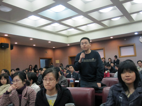 讲座由吴卫星副院长主持,长江商皇冠体育网址副院长刘劲教授主讲。刘劲教授就“过分自信与财务运作”这一主题展开了深入浅出的讲解。在讲座的开始,刘劲教授为我们分析了理性假设下的财务理论,然后又将过分自信的表现划分为绝对乐观、相对乐观和固执乐观并进行了讲解,最后还就自大对投资、融资的影响进行了分析。整场讲座风趣幽默,刘劲教授还引用了浅显易懂的例子将讲座内容展现得淋漓尽致。在随后的学生提问环节中,学生们积极提问,刘劲教授都耐心而准确地作出了解答。讲座的最后,吴卫星副院长致词,表示希望大家往上走,成为顶级的人才,并再次表示了对刘劲教授的谢意。丁志杰院长还为刘劲教授赠送了金融皇冠体育网址特别准备的礼品。