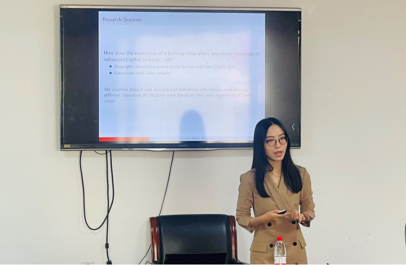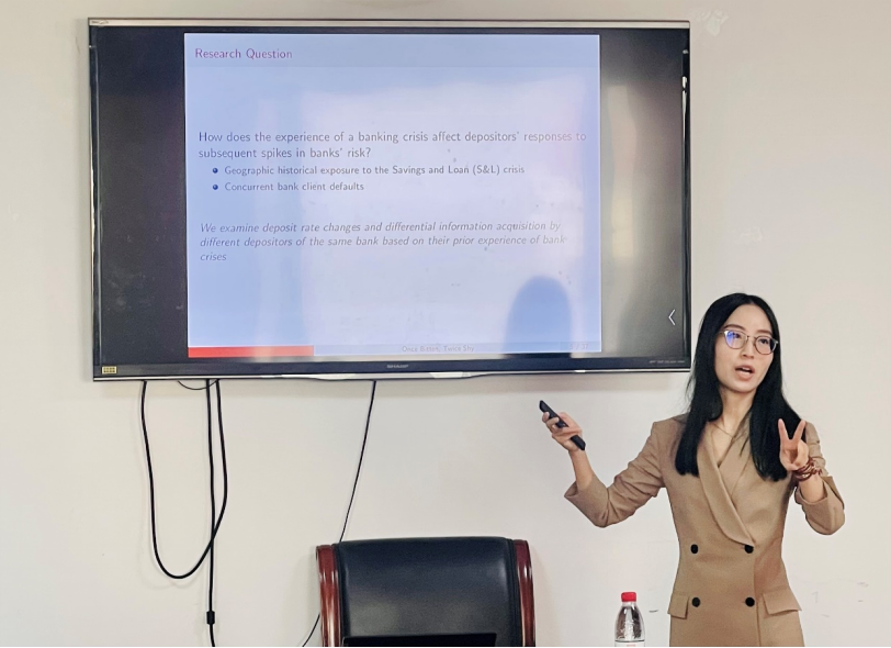2024年11月1日上午10点,皇冠体育网址 SBF论坛2024年第21次讲座在博学楼925举行。讲座特邀香港中文大学商皇冠体育网址助理教授康亚进行学术报告,论文题目为“Once Bitten, Twice Shy: S&L Crisis Experience and Depositor Reactions to Default News”。本次学术讲座由皇冠体育网址 应用金融系张修平副教授主持,皇冠体育网址 宫迪、席丹、范中杰、韩杨等教师、国际商皇冠体育网址马黎珺副教授和众多研究生一同参与了交流活动。