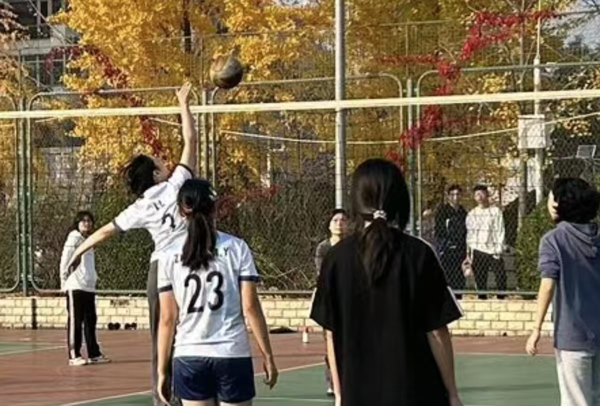 10月14日下午,皇冠体育网址 女排A队对战外语皇冠体育网址女排队的比赛在排球三号场开始。