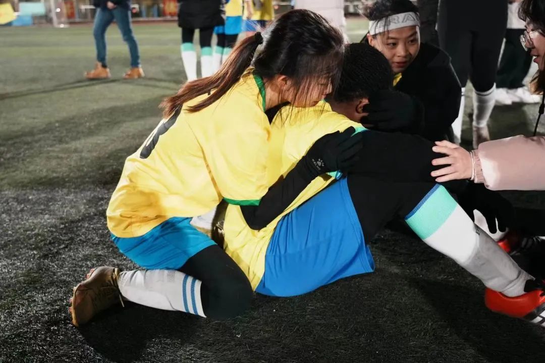 我们还有机会,金色的曙光依然闪耀在这片球场!!!金融女足球员们奔向彼此,庆祝这一粒金子般的进球!!最后几分钟内,金融女足激情高涨、乘胜追击,力求在终场哨响前再进一球,但国中统女足展现了严密的防守,保持着一贯的韧性。终场哨响,比赛进入点球大战。比赛的胜负、冠军的归属都将在十二码点前决出!而在点球开始之前,为金融女足在最后关头扳平一球的Ardelle久久地坐在场边,早已泣不成声。