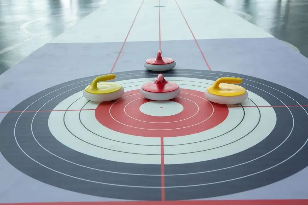 比赛时双方队员轮流登场,将冰壶推入得分区。