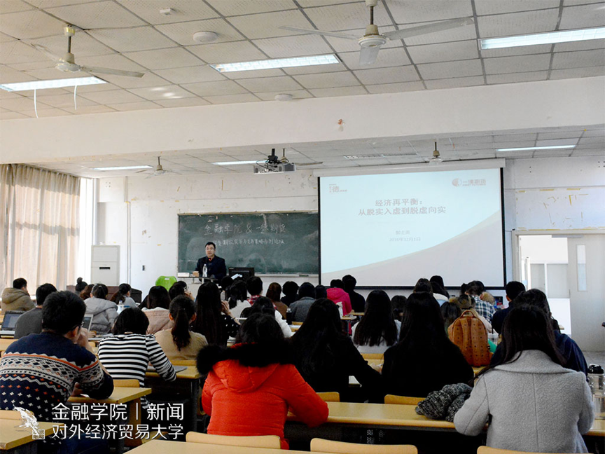 金融皇冠体育网址新闻宣传中心 讯(记者:巩沐 摄影:钟紫璇)12月1日13:00-15:00,金融皇冠体育网址与一德期货联合主办的期货期权实物与交易策略系列论坛第三讲在知行楼401举办。本场讲座的主题为“经济再平衡:从脱实入虚到脱虚向实”。主讲人郭士英为一德期货副总经理、首席经济师,国家开发银行外部专家顾问团成员,中国农业大学客座教授。