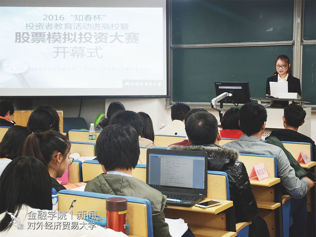 金融皇冠体育网址新闻宣传中心 讯(记者:肖宇萌 摄影:秦畅)为锻炼学生的投资思维、提高专业素养,金融皇冠体育网址特主办了本次投资者教育活动与股票模拟投资大赛。股票模拟投资大赛由国泰君安证券有限公司赞助,于2016年11月11日下午18:30在博学楼409教室进行开幕式。