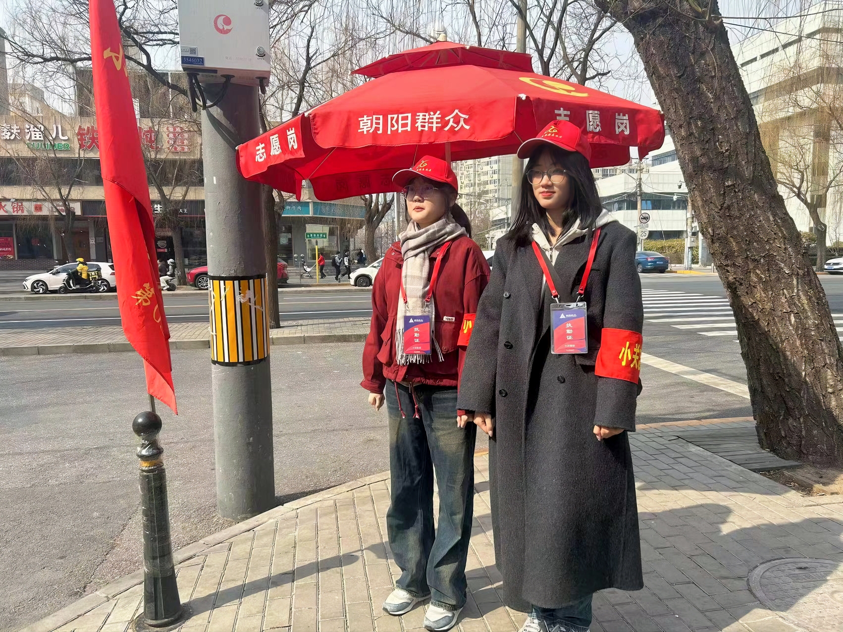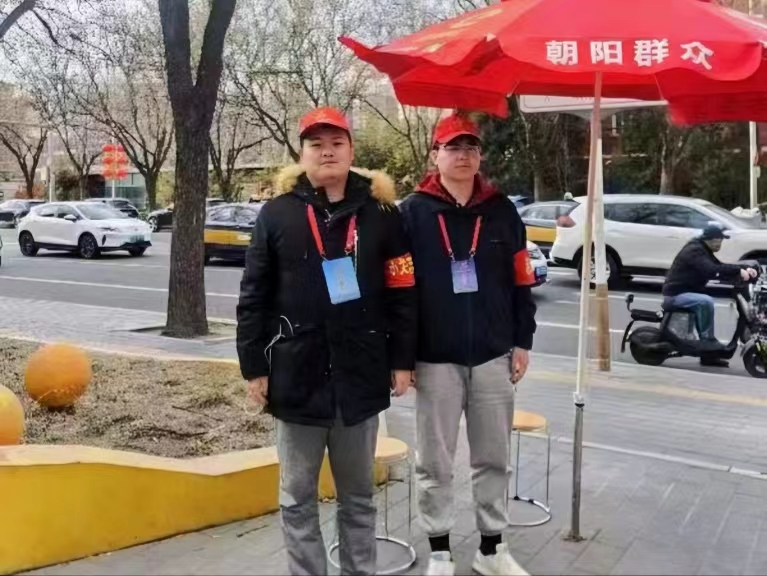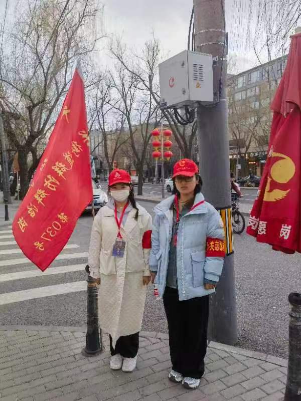 来自贸大的志愿者们构成了惠新东街辖区一道充满青春朝气的风景线。为了维护两会期间的社会稳定,志愿者们牺牲自己中午或晚间休息的时间,自愿推迟午饭、晚饭时间,坚持按时准点执行站岗任务,为两会的举办提供了坚实的保障。