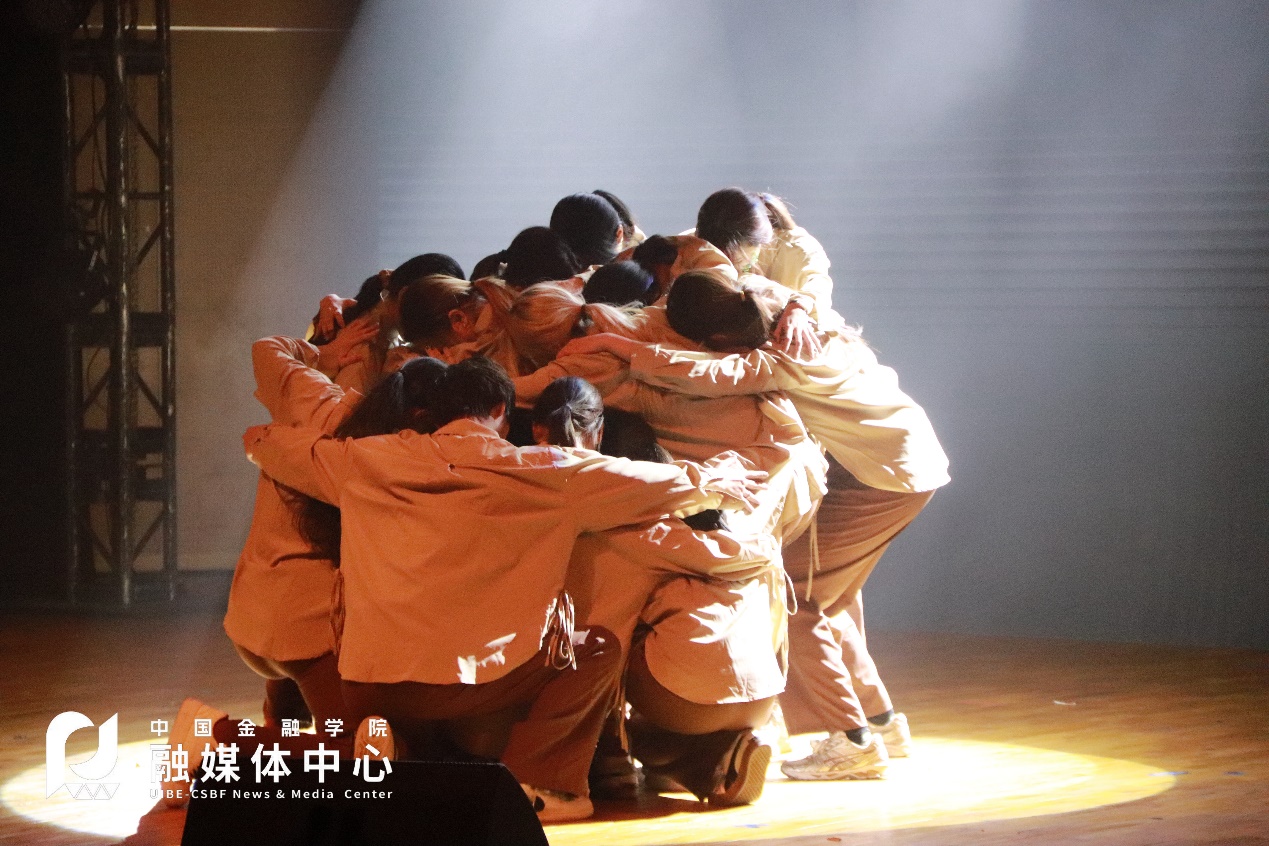 除此之外,在自选项目中,两个多月的刻苦训练,大家一遍遍跟着视频扣动作、排队形,一遍遍更改细节、调音乐,从刚开始一周两训或者三训到最后一周五训,同样的歌曲我们听了上百遍,同样的动作我们精进了一次又一次。看着大家周末早上九点从寒风中来到舞室,晚上十点半在安静的灯光中离开,看着大家总是拿最好的状态录制每一次排练视频,累得气喘吁吁也从不喊停,正如舞台上跳跃、散开,最后慢慢聚拢的动作,正如“石”这一主题的内涵——我们坚韧,我们团结,我们顽强,我们总会取得最后的胜利。