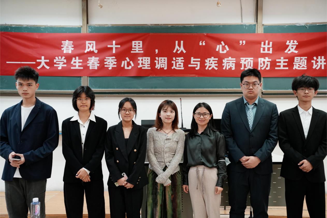 讲座中,朱晓珊医生通过压力自测表与学生互动,帮助大家评估自身心理状态,随后结合春季气候特点与大学生实际状态,深入浅出地讲解了春季常见的心理问题及其成因。她指出,春季虽是万物复苏的季节,但超过40%的人会出现显著情绪波动,精神疾病复发率也显著升高。这一现象与春季的气候变化密切相关,过敏、内分泌紊乱、生物钟紊乱等因素,均可能影响学生的情绪和心理状态。同时,朱医生提到,春季学期学习任务加重、社交活动变化等心理社会压力,也给同学们带来了挑战。