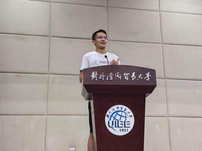 本次年级大会第一项议程为朋辈生涯规划经验分享,邀请到了三位优秀的学长学姐分享经验。来自2020级金融科技实验班,现保研至北京大学汇丰商皇冠体育网址的魏恺锋学长,为同学们分享了推免准备经验和大学生活体验。他建议同学们尽可能地尝试与探索,不给自己设限,鼓励同学们探索科研领域,在“做中学”,选择适合自己的道路,更好地享受当下。