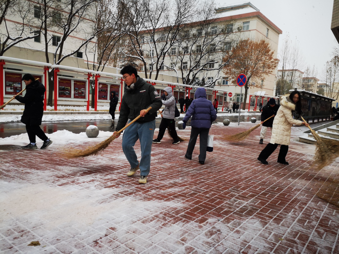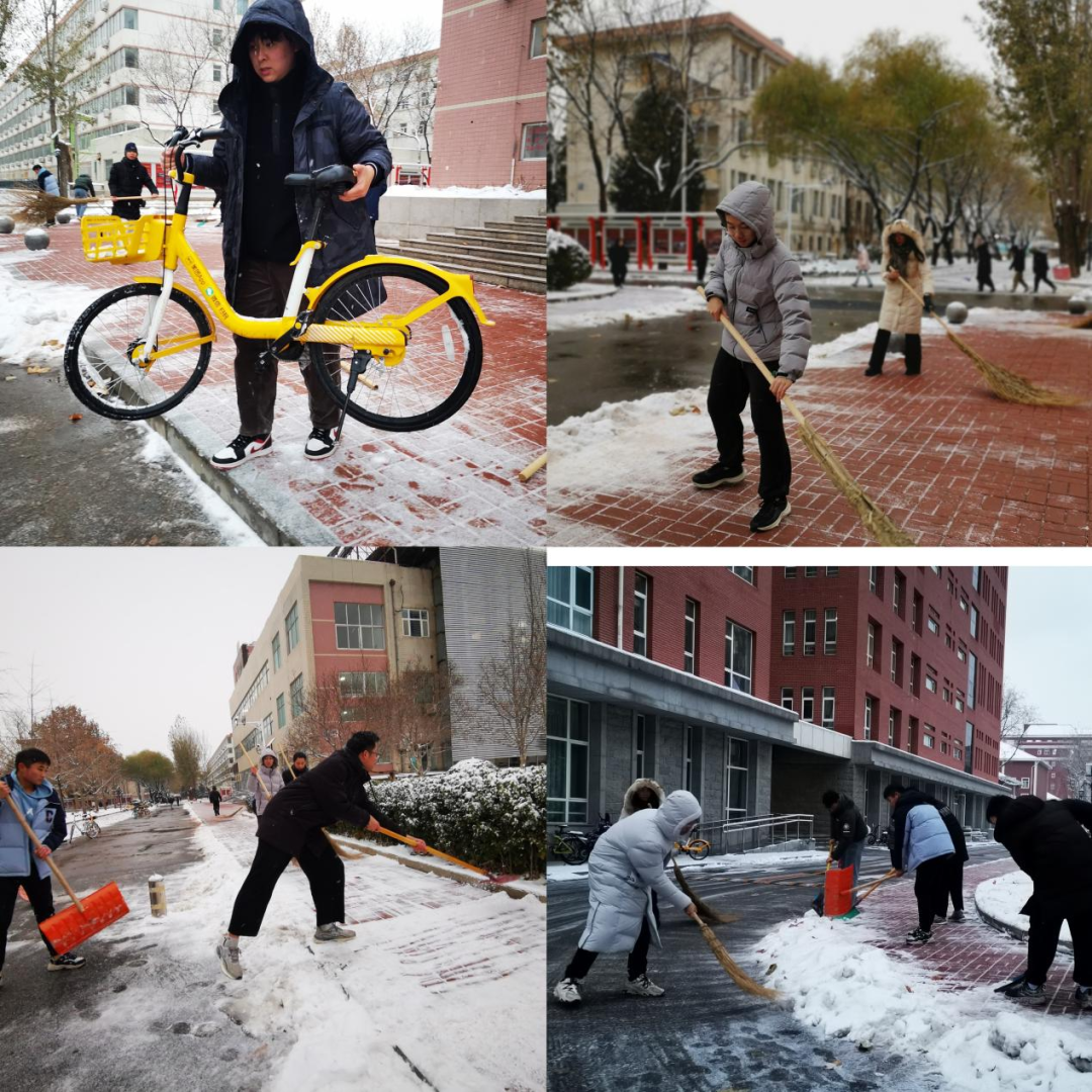 我院“以雪为令”,第一时间响应学校冬季扫雪劳动育人活动倡议,组织学生志愿积极参与扫雪劳动,同学们在扫雪除冰过程中体会到了冬天独有的乐趣,加深了对劳动精神的认识,展现出了我院学生团结协作和乐于奉献的良好精神风貌。