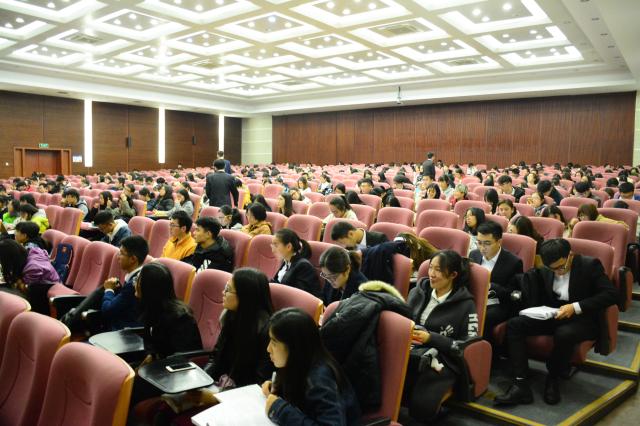 金融皇冠体育网址新闻宣传中心 讯(供稿:孙欣茹 摄影:李嘉元)2017年11月5日晚6:30,由金融皇冠体育网址和外语皇冠体育网址联合举办的2017-2018学年科研立项开题指导讲座在宁远三层会议厅如期举行。本次讲座特邀优秀指导教师金融皇冠体育网址卞洋老师做专题指导,金融皇冠体育网址2014级辅导员吴虹利老师出席了活动,历届科研立项优秀团队代表进行了经验分享,讲座吸引了三百余名同学积极参与,收效良好。