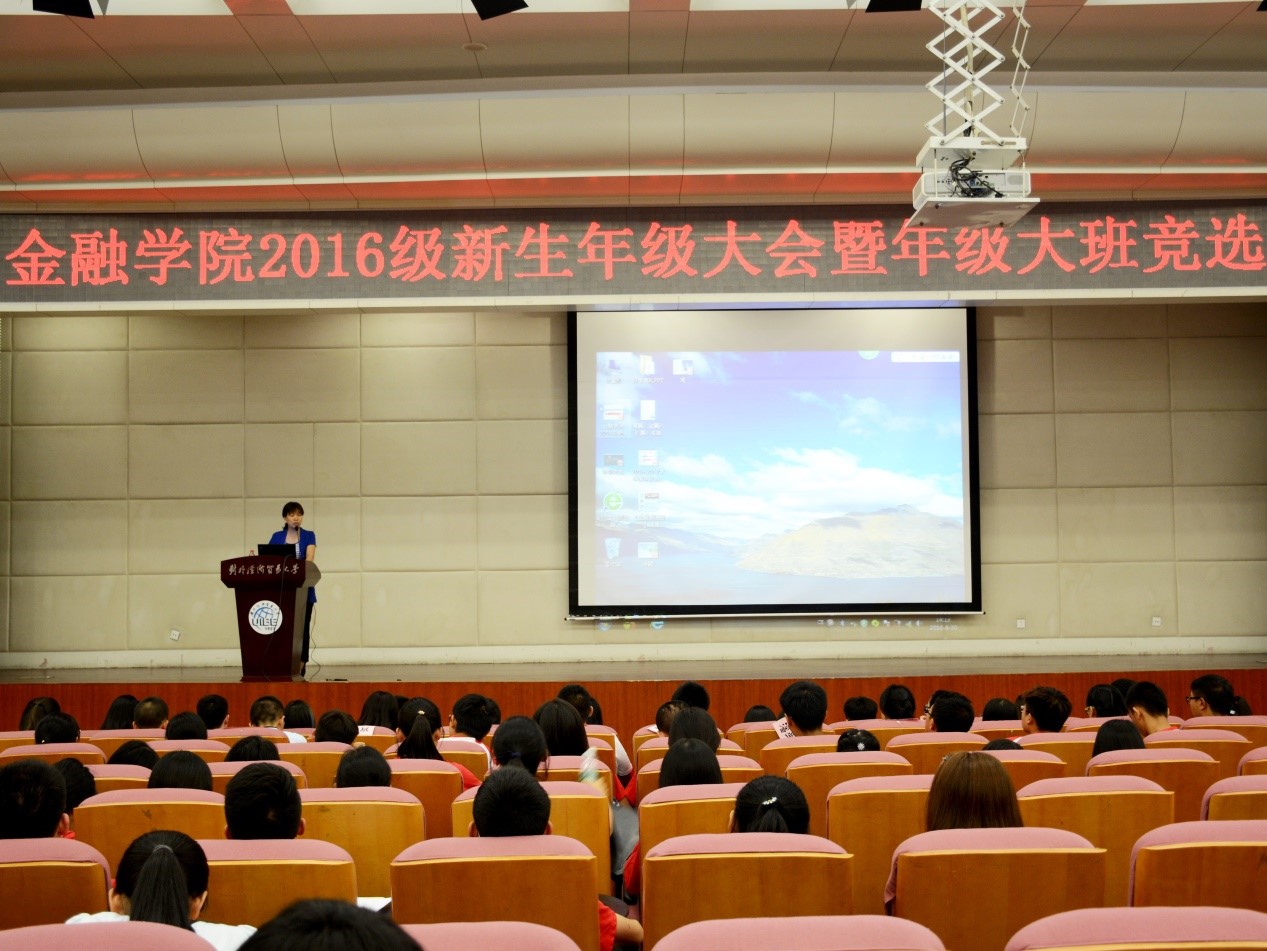 大会最后进行了2016级新生大班班长竞选。学生们积极热情,共有31人参加了竞选。每人三分钟的竞选演讲后,全体学生投票选出了八位大班班长。他们分别是是金融学专业的郭梓栋、苏星宇、汪之杰、王翼翔,金融工程专业的陈钰嘉、刘萧然、骆思扬,投资学专业的艾力尼尕尔·艾尼瓦尔。