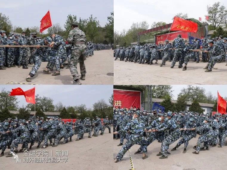 在慰问的师生代表们到达基地不久后,为了增强团队凝聚力,增强军训的趣味性,军训基地安排了拔河比赛,在一、六、九营的金融皇冠体育网址20级的同学们组成代表队共同参赛。在师生们的共同期待中,比赛拉开了帷幕,比赛哨声响起,大家便卯足了劲跟随口号和呐喊声一同拼搏。同学们的呐喊与汗水,老师和观众们的加油鼓劲,以及教官老师们的统一号令都体现了2020级同学的团结一致与不懈奋斗的精神。金融学子们用行动诠释了团结就是力量,彰显了不屈不挠的精神。