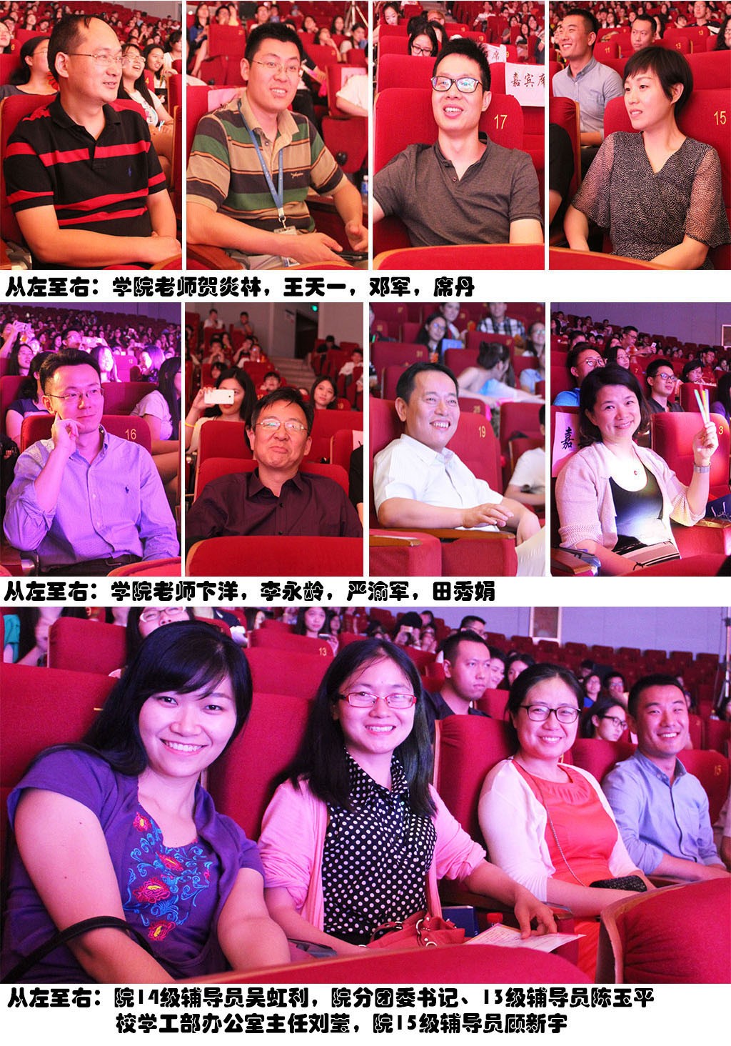 多人舞蹈《茉莉花》舞姿轻盈俊俏,《甄嬛传新编》幽默欢脱,展示出金院2012级毕业生们的青春活力。无论是舞蹈《I want you to know》,还是之后的歌曲串烧《你被写在我的歌里》,都淋漓尽致地表达了学子们对终将离别校园的深深不舍。而《支部那些事儿》则以党支部学子的日常工作生活为背景,贯穿求索记忆,将大家带回到温暖的回忆中。2012级辅导员曲小杰老师伴随着温情的话语缓缓上台,“要学会告别,学会爱与感恩,要学会迎接新的生活”,情到深处,她不禁热泪盈眶。接下来,反串歌舞表演《农村艺术团汇报表演——给我们的歌》奔放热情,话剧《太阳的后羿》风趣活泼,舞蹈《从今天开始 bang bang bang 》活力四射,独唱节目《惠园遇青》将学子们对惠园的依恋揉进美妙的歌声里,歌声浅浅,唱进每位金融人的心中久久不息。