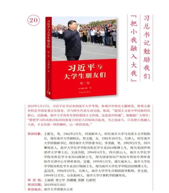 2019年是五四运动100周年,也是南开大学建校100周年。习总书记考察南开大学,是南开青年的无上荣光。新时代的南开青年一定牢记总书记的教诲,为实现中国梦贡献南开力量,交出一份无愧于人民、无愧于历史、无愧于时代的南开“答卷”!