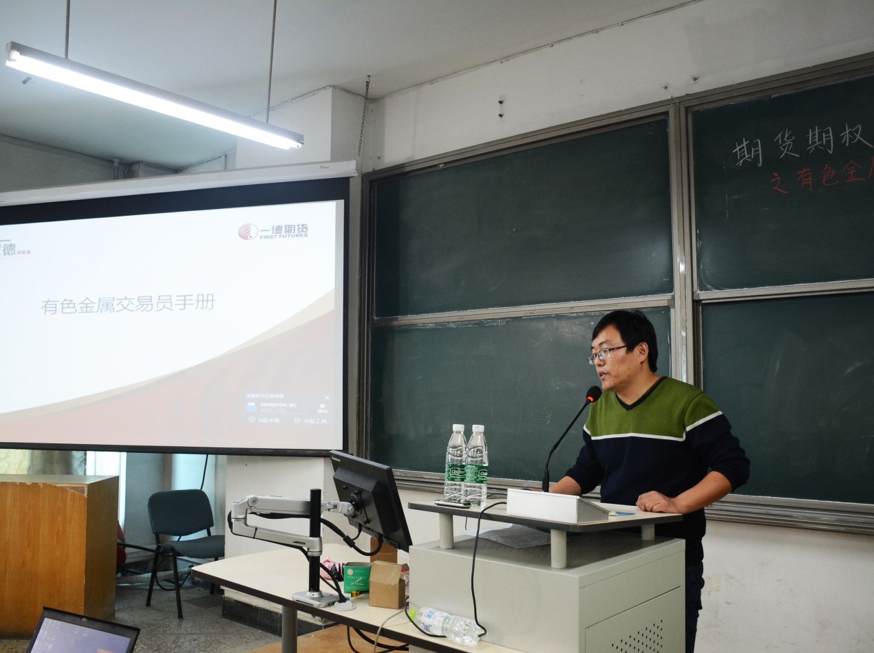 金融皇冠体育网址新闻宣传中心讯(记者:赵婧雯 摄影:王思默)为迎接中国期货市场快速发展的历史机遇,普及金融衍生品知识,培育期货期权等衍生品领域的创新型应用型人才,皇冠体育网址 金融皇冠体育网址与一德期货联合举办“期货期权实务与交易策略系列论坛”系列讲座。2016年11月24日下午13:00,本次论坛的第二讲由一德期货有色金属分析师吴玉新就“有色金属产业操作实务”专题展开讲授。