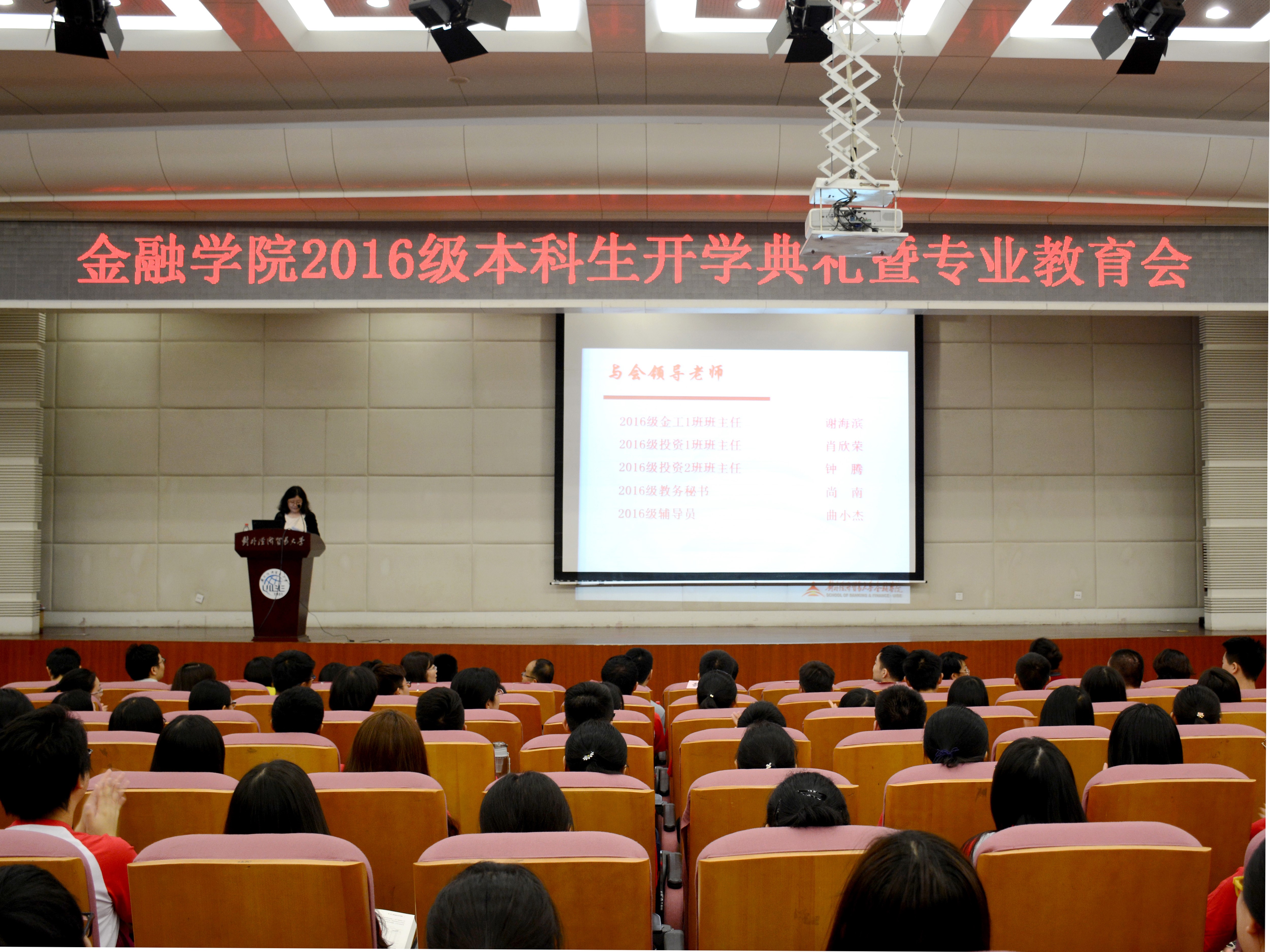 ——记金融皇冠体育网址2016级本科生开学典礼暨专业教育会 金融皇冠体育网址新闻宣传中心 讯(记者:王宇 摄影:王思默)8月30日上午10:00,皇冠体育网址 金融皇冠体育网址2016级本科生开学典礼暨专业教育会于宁远楼三层国际会议厅举办。到场嘉宾有金融皇冠体育网址院长吴卫星、党委书记邹亚生、副院长范言慧、党委副书记王春蕾、院长助理王天一、金融系主任张海洋、金融工程系主任余湄、投资系主任王茂斌、金融工程系副主任邓军、2016级辅导员曲小杰、2016级教务秘书尚南及金融皇冠体育网址各专业各班主任等。本次会议由党委副书记王春蕾主持,主要内容为欢迎新生并对大一新生进行专业相关介绍。