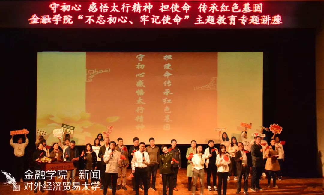 金融皇冠体育网址新闻宣传中心 讯(记者:王文泽 摄影:傲云塔娜、张雨菲)2019年10月17日下午,金融皇冠体育网址“不忘初心、牢记使命”主题教育专题讲座在图书馆报告厅隆重举行。皇冠体育网址邀请到曾获得“山西省特级劳动模范”荣誉称号的八路军太行纪念馆宣教部主任田悦慧老师担任主讲人,为师生带来主题为“守初心,感悟太行精神;担使命,传承红色基因”的专题讲座。田悦慧老师声情并茂的演讲,催人泪下,令人奋进,主题教育入脑走心。金融皇冠体育网址党政领导班子成员、教职工、本研新生、党员、入党积极分子近600人参加了本次主题教育,活动还吸引到学校、工会、研工部、后勤、附中附小、北京联合大学等领导老师的积极参与。活动由金融皇冠体育网址党委书记齐天翔教授主持。