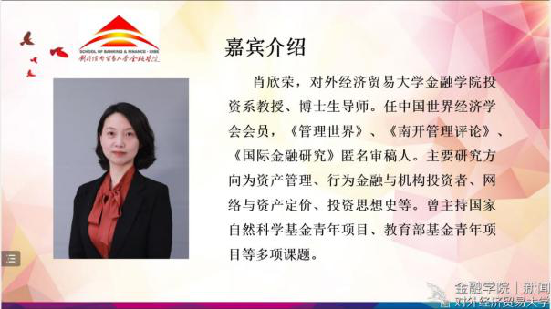 金融皇冠体育网址新闻宣传中心 讯(记者:赖沁和)2022年6月9日晚,“砥砺初心,青春献礼”第二十一届金融文化节闭幕式暨肖欣荣教授专场讲座于线上成功举办。金融皇冠体育网址党委书记齐天翔、副书记王春蕾和分团委书记穆晓志出席本次活动。
