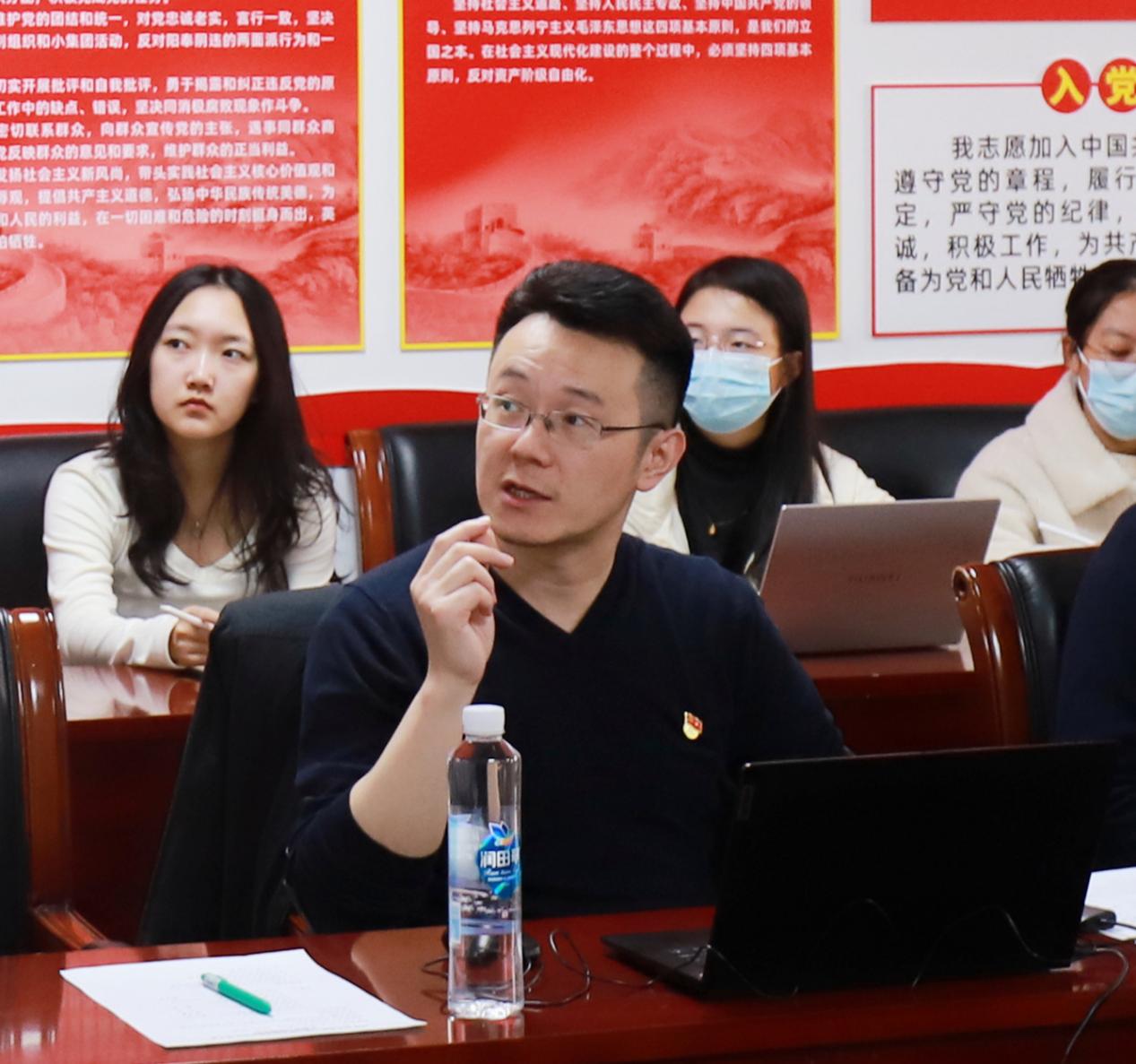 学校党委副书记张小锋老师做总结发言,对卞洋老师的主题分享予以高度评价,肯定本次学习的意义价值。他鼓励党支部积极开展多元的主题学习活动,加强党支部建设,希望同学们保持警醒,认真学习,从中华优秀传统文化吸收优秀思想、传承传统,注重个人修养提升,发挥党员旗帜引领作用,成为政治过关、思想过硬、本领要强的金融人才。