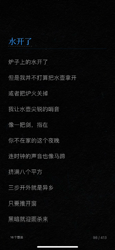 那种突如其来的感情像沙漠里遇到的暴雨。我想到因为我活着,或者在我活着的时候,有人很痛。我也不知道的地方,某个认识或不认识的人因为我而剧烈痛苦。