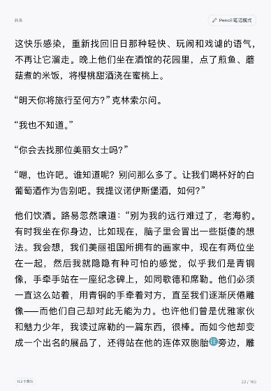 诗中可以有画,但诗不全是画。画外意,待诗来传,才能圆满,诗里具有画所写的形态,才能形象化、具体化,不至于太抽象。但画和诗的分界仍是不能泯灭的,而探索这微妙的分界,正是近代美学开创时为自己提出了的任务。诗和画的圆满结合,即诗不压倒画,画也不压倒诗,而是相互交流交浸,就是情和景的圆满结合,也就是所谓“艺术意境”。