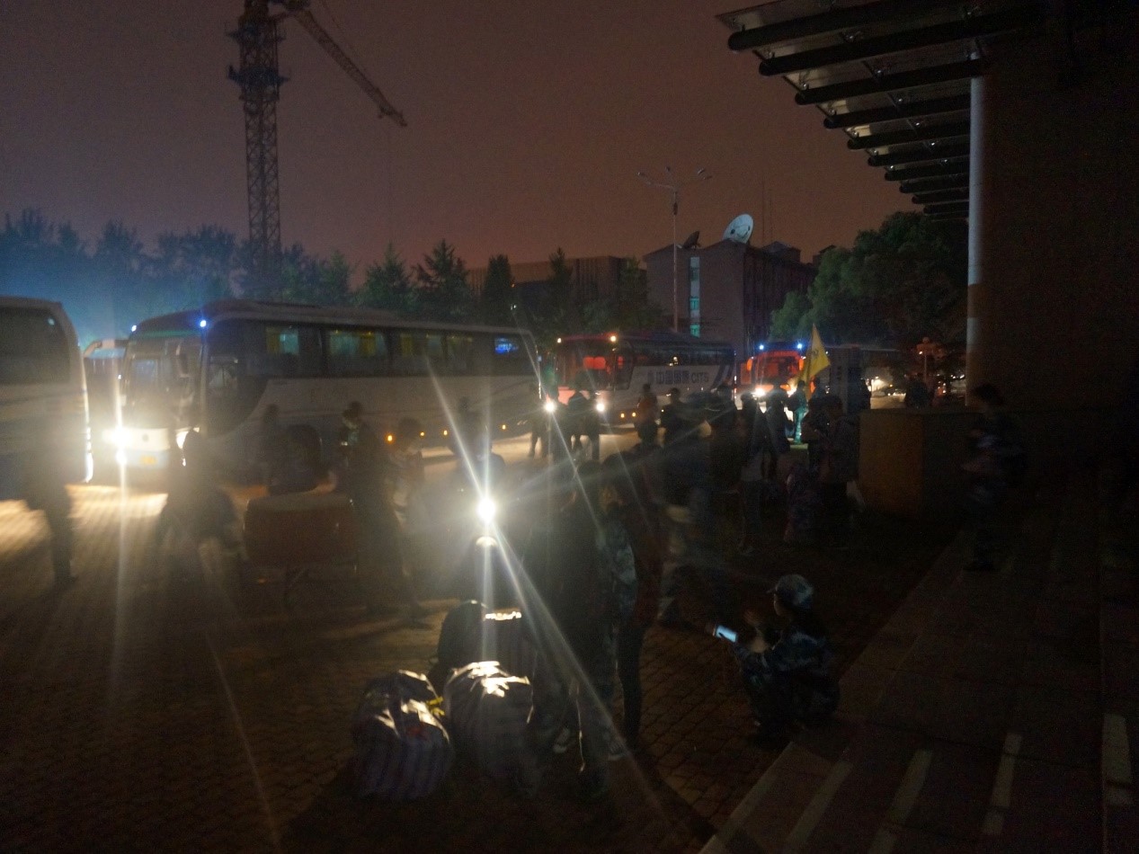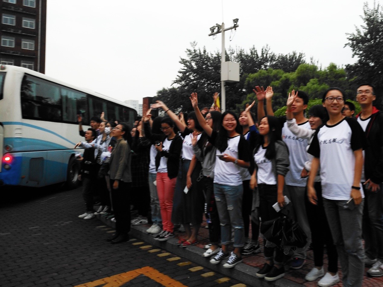 早上6点,16级学子正式登上大巴车前往军训基地,伴随着各组织学子“金融!金融!”的声声助威,伴随着老师及各位学长学姐的挥手作别,大巴车满载着16级学子们徐徐驶出了校园。