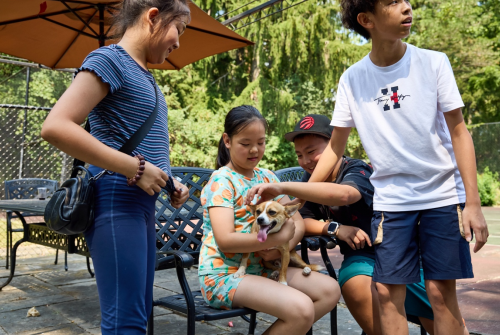 少年后辈,或青衫翩翩,或素衣轻扬,或彩衣明艳,笑意盈盈,风采初生,意气正浓。间或与狗子嬉戏,追逐于光影之间,童趣横生,自在如风。