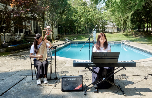 校友二代潇洒献艺,江天与友人的琵琶钢琴合奏尤为动人——纤指轻拨之际,清韵流转,大珠小珠落玉盘。