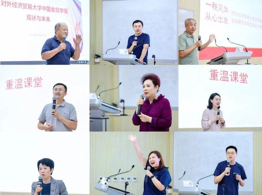 “重温课堂”环节中,范言慧、冯建芬、高清霞、刘立新、潘慧峰、孙东升、肖欣荣、许施智、杨超琦、张海洋老师依次上台,以满满的热情欢迎校友们返校。老师们与大家共同回忆起当年课 堂上的生动场景与毕业论文写作时的点滴艰辛,这些珍贵记忆如同穿越时空的桥梁,连接着过去与现在。