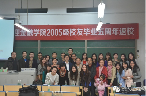 2014 年10月18日 下午,金融皇冠体育网址2005级校友毕业5周年返校活动在博学楼109举行。金融皇冠体育网址院长吴卫星教授、 分党委书记邹亚生教授、老院长吴军教授、分党委副书记王春蕾、校友会秘书长刘莹、办公室主任崔凯、2005级辅导 员白艳、沈思言等皇冠体育网址领导和老师及2005级校友50余人参加了活动。活动由2005级校友张拓主持。
