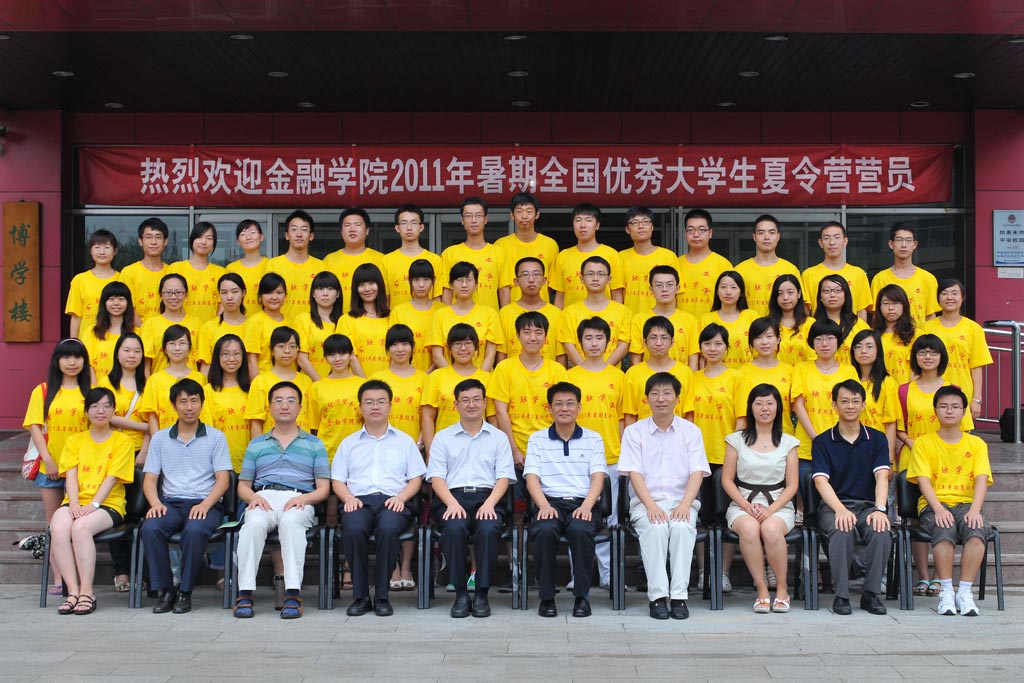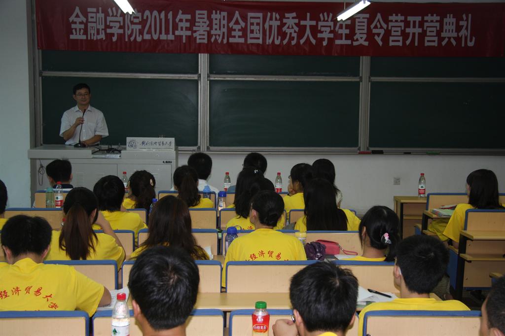 2011 年7月25日 上午9点,金融皇冠体育网址2011年暑期全国优秀大学生夏令营开营典礼在博学楼308教室举行。研究生部主任杨长春、研究生部主任助理蔡永明、金融皇冠体育网址院长丁志杰、副院长吴卫星、分党委副书记滕云、金融系系主任王剑锋、研究生辅导员崔凯及全体营员参加开营典礼。