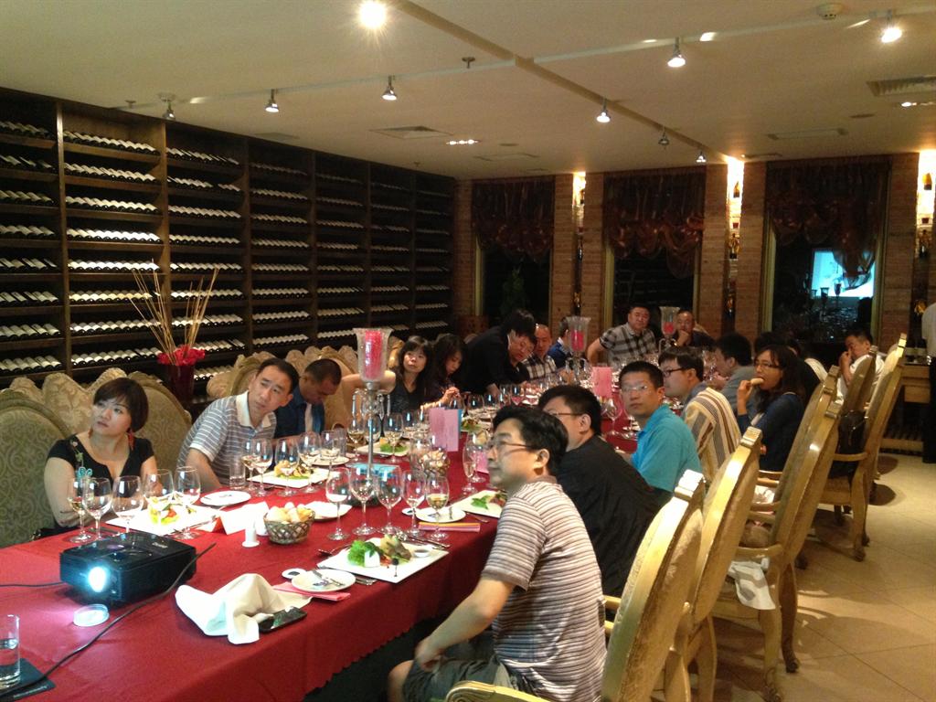 5月25日晚,“中国•金融皇冠体育网址校友会2013专场红酒品鉴晚会”在草场地艺术区醉库西餐厅举行。此次活动由91投资校友、中国民生银行望京支行行长李静发起,在金融皇冠体育网址丁志杰院长和校友会秘书长刘莹老师的大力支持下组织的,旨在促进校友间交流,加深了解,创造合作机会,晚会主题为“大资管时代下的校友合作展望”,20余位从事证券、信托、私募基金、银行工作的校友及刘莹老师参加了本次活动。
