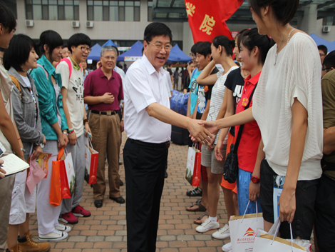 党委书记王玲,校长施建军,党委副书记杨逢华,校长助理王强,学工部部长王云海,金融皇冠体育网址院长丁志杰,分党委书记吴卫星、副书记滕云等领导纷纷亲临现场看望新生、热心地与学生家长交谈。他们耐心地解答了新生们的问题,帮助学生了解专业特点、树立学习信心。